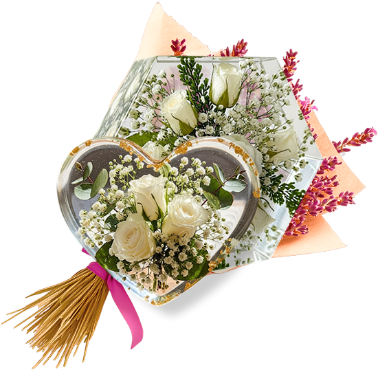 Our business was born from a place of love and a desire to create something truly special. It all started when I was looking for a unique and memorable way to honor the weddings of my two daughters and my son's wife. I wanted to give them a keepsake that would forever hold the magic of their special day. I began experimenting with preserving their beautiful bouquets in resin, carefully arranging each petal and bloom to create a lasting piece of art.